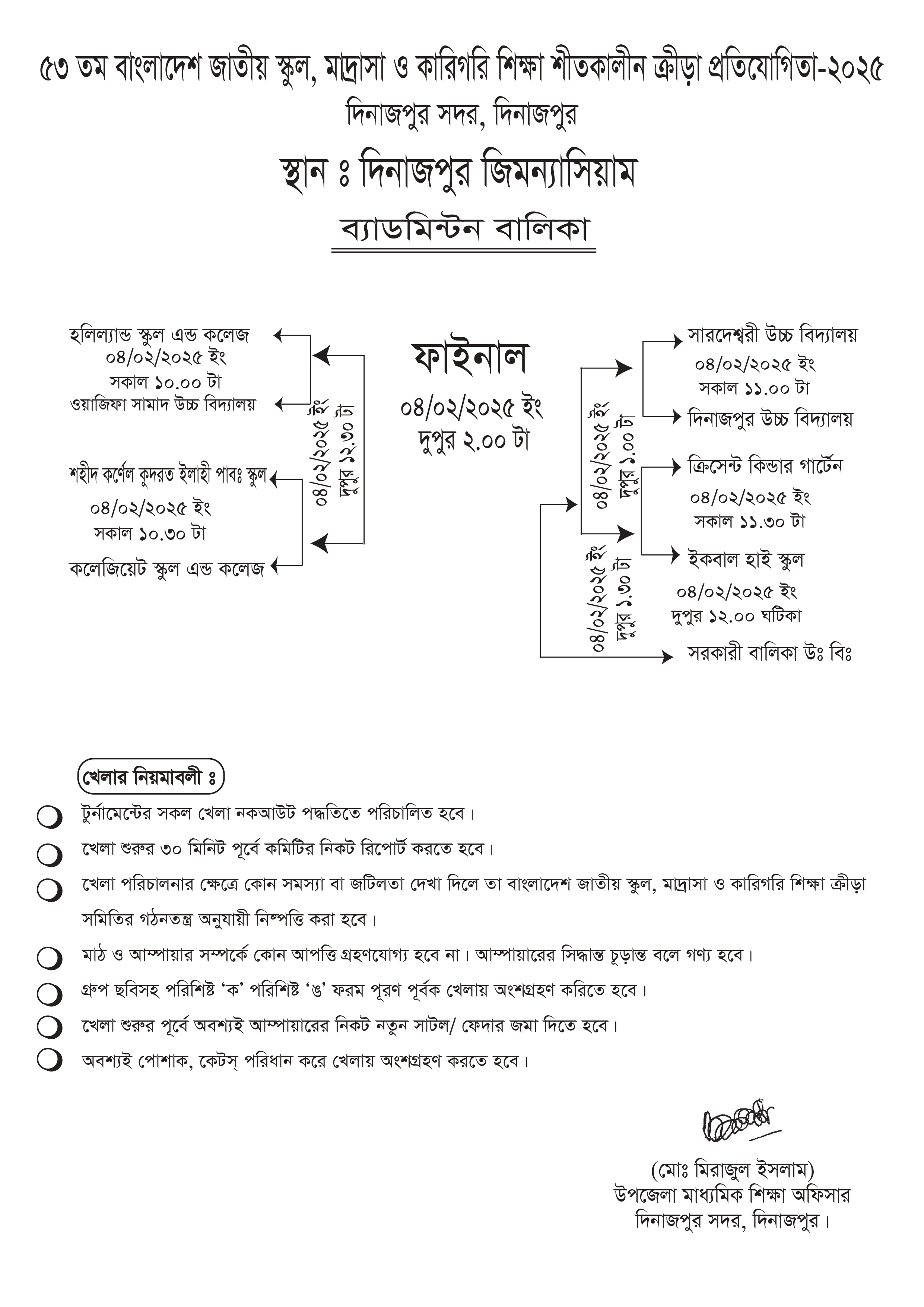 ৫৩ তম বাংলাদেশ জাতীয় স্কুল, মাদ্রাসা ও কারিগরি শিক্ষা শীতকালীন ক্রীড়া প্রতিযোগিতা-২০২৫