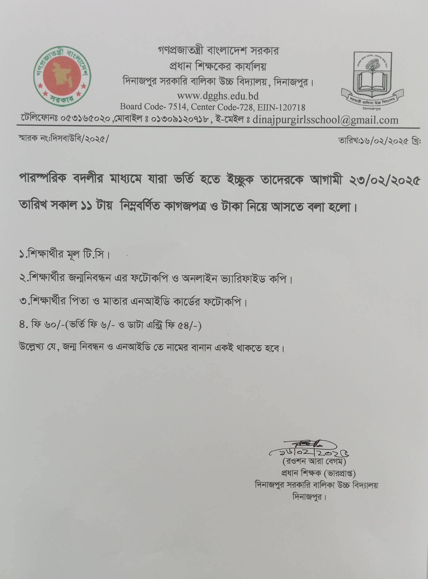 ভর্তি বিজ্ঞপ্তি ২০২৫