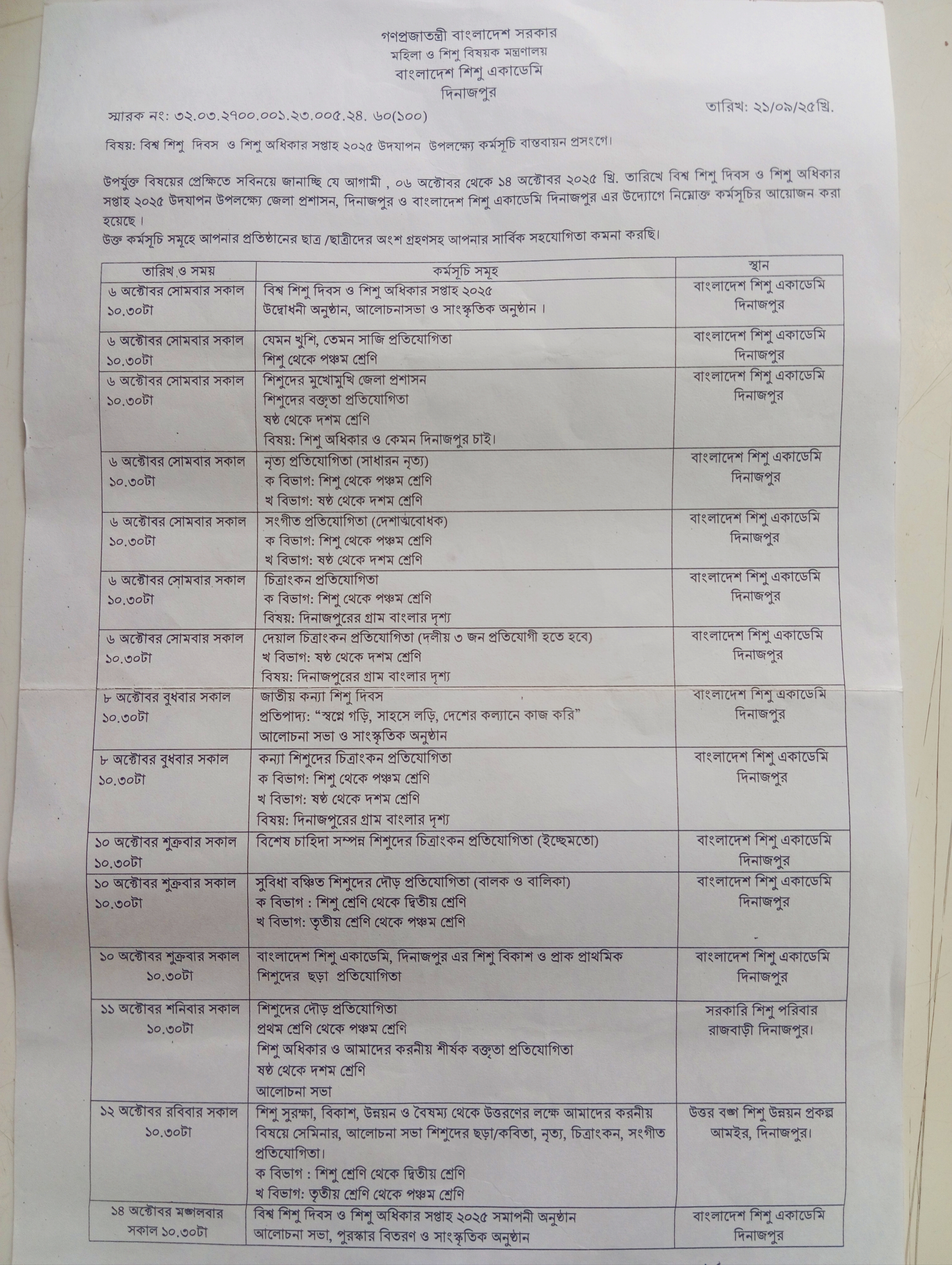 বিশ্ব শিশু দিবস ও শিশু অধিকার সপ্তাহ ২০২৫ উদযাপন উপলক্ষে অংশগ্রহণ প্রসঙ্গে।