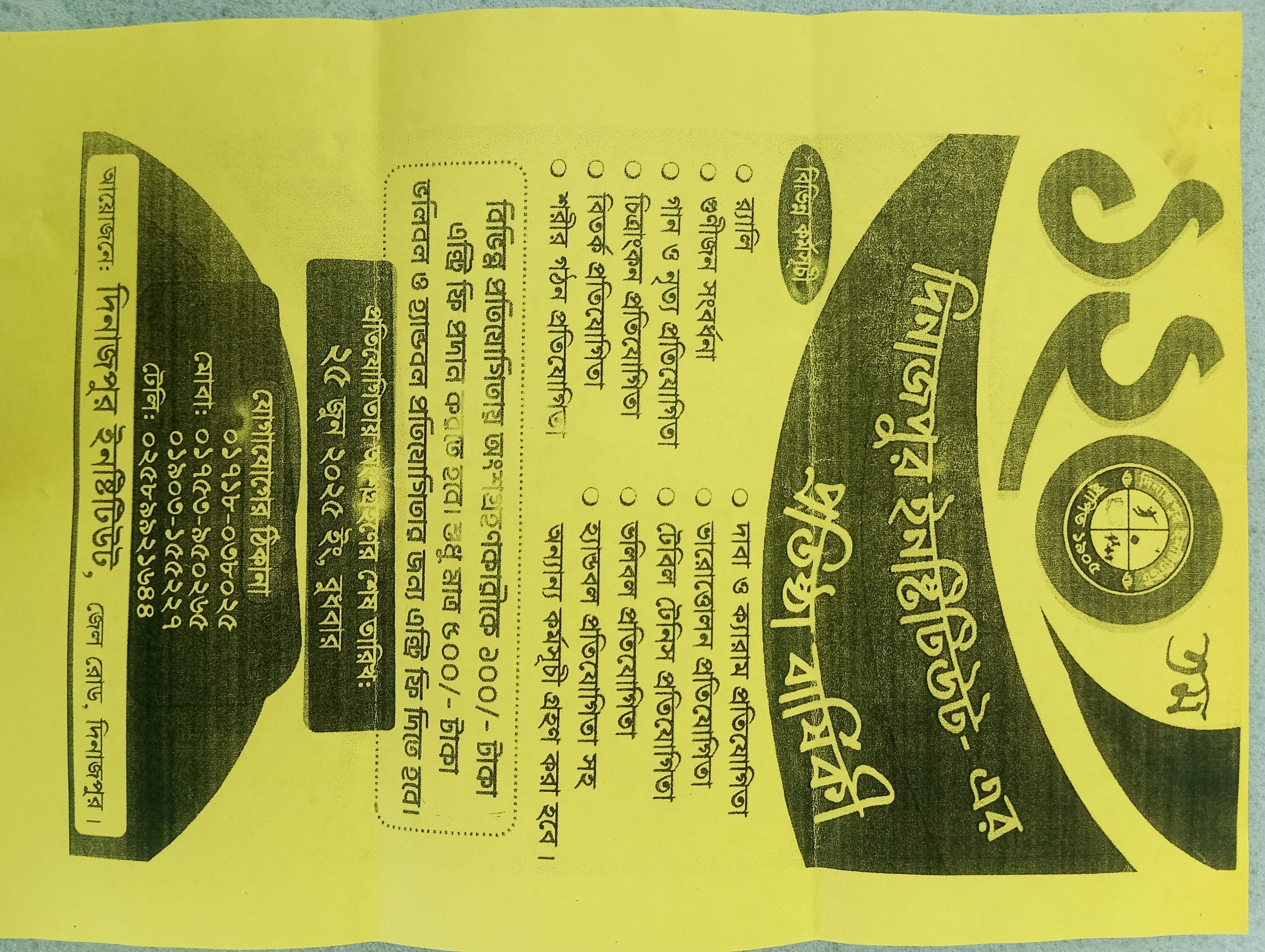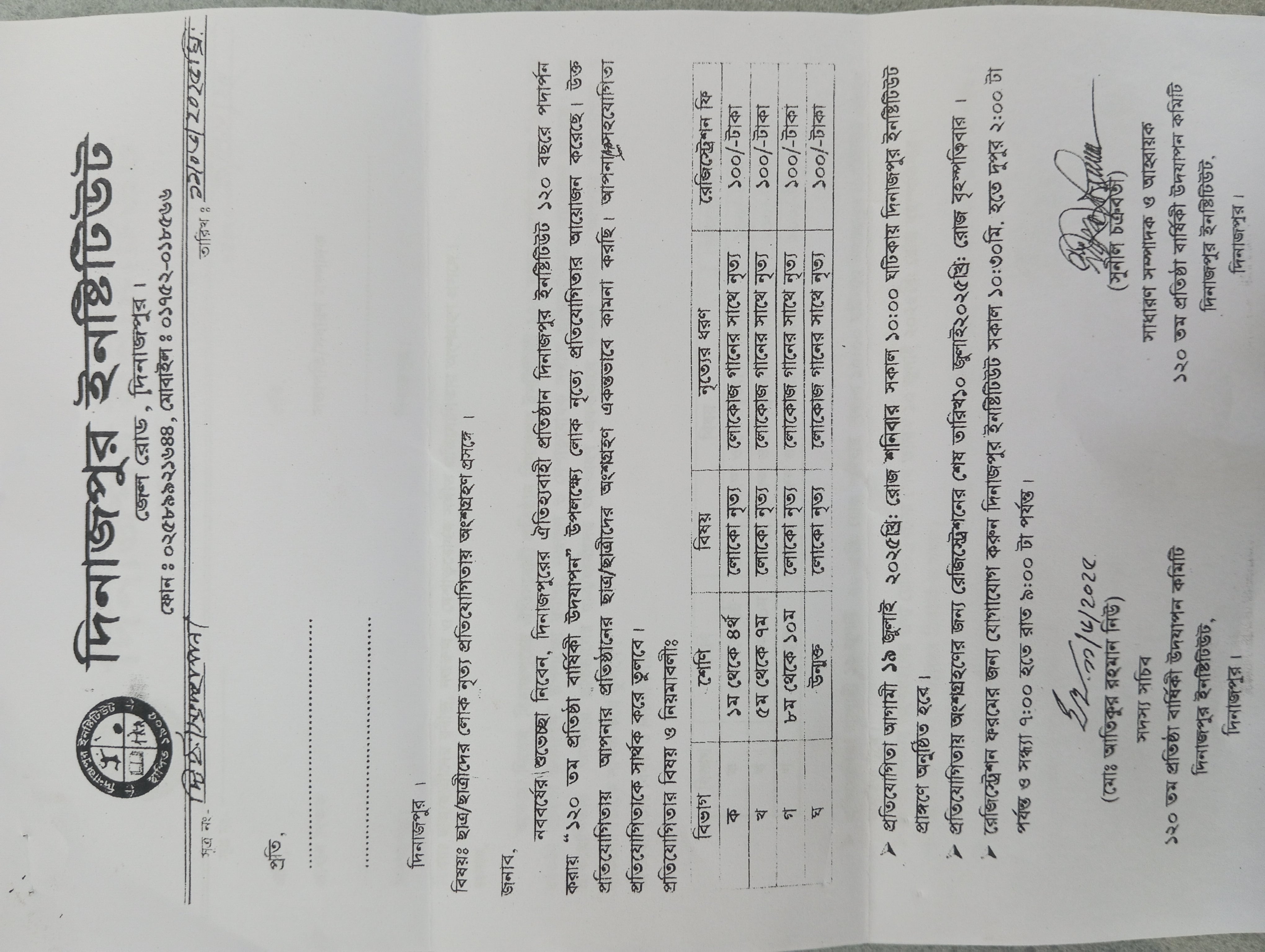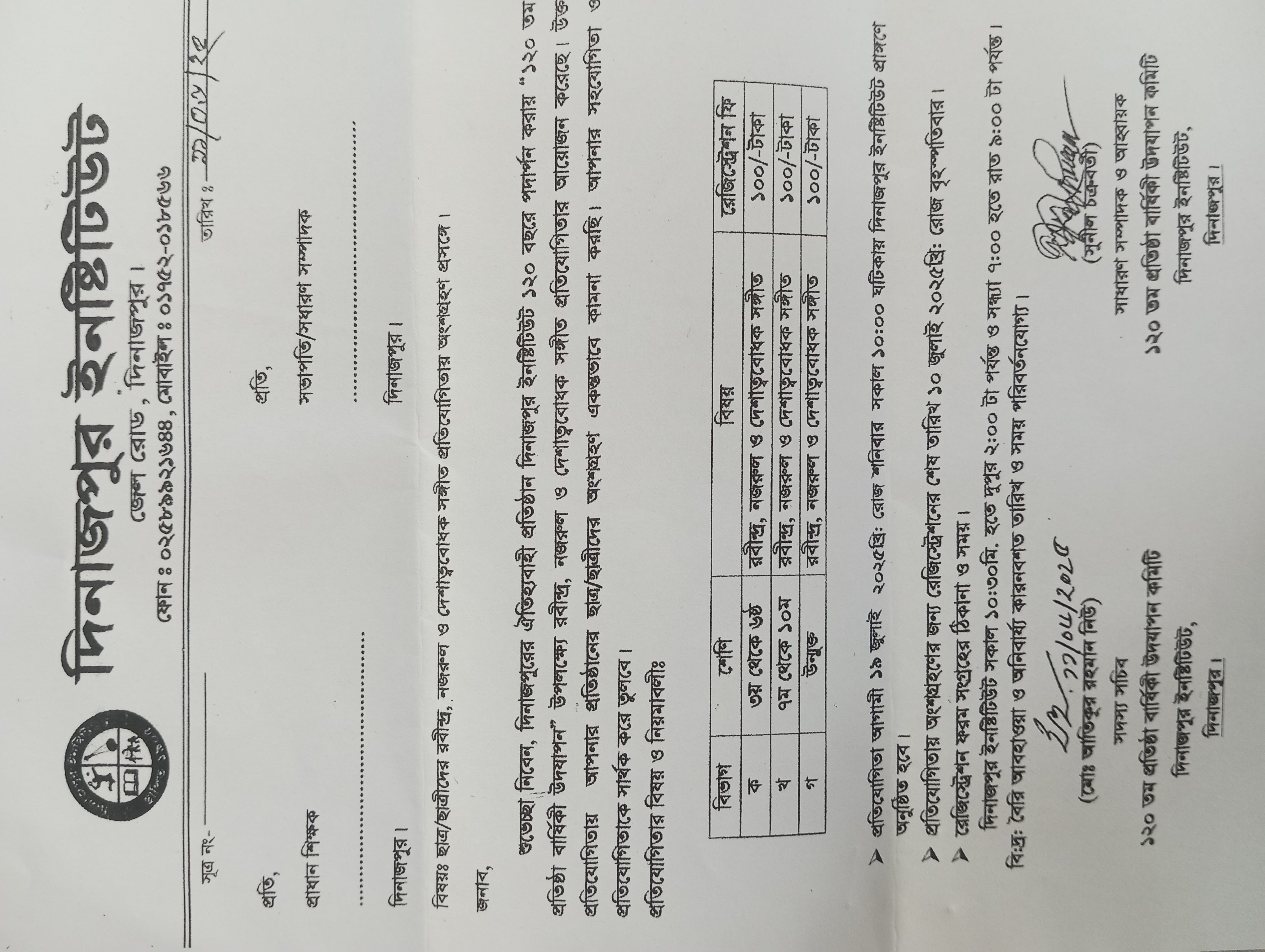 দিনাজপুর ইন্সটিটিউট এর ১২০ তম প্রতিষ্ঠা বার্ষিকী উপলক্ষে বিভিন্ন প্রতিযোগিতায় অংশগ্রহণ প্রসঙ্গে।