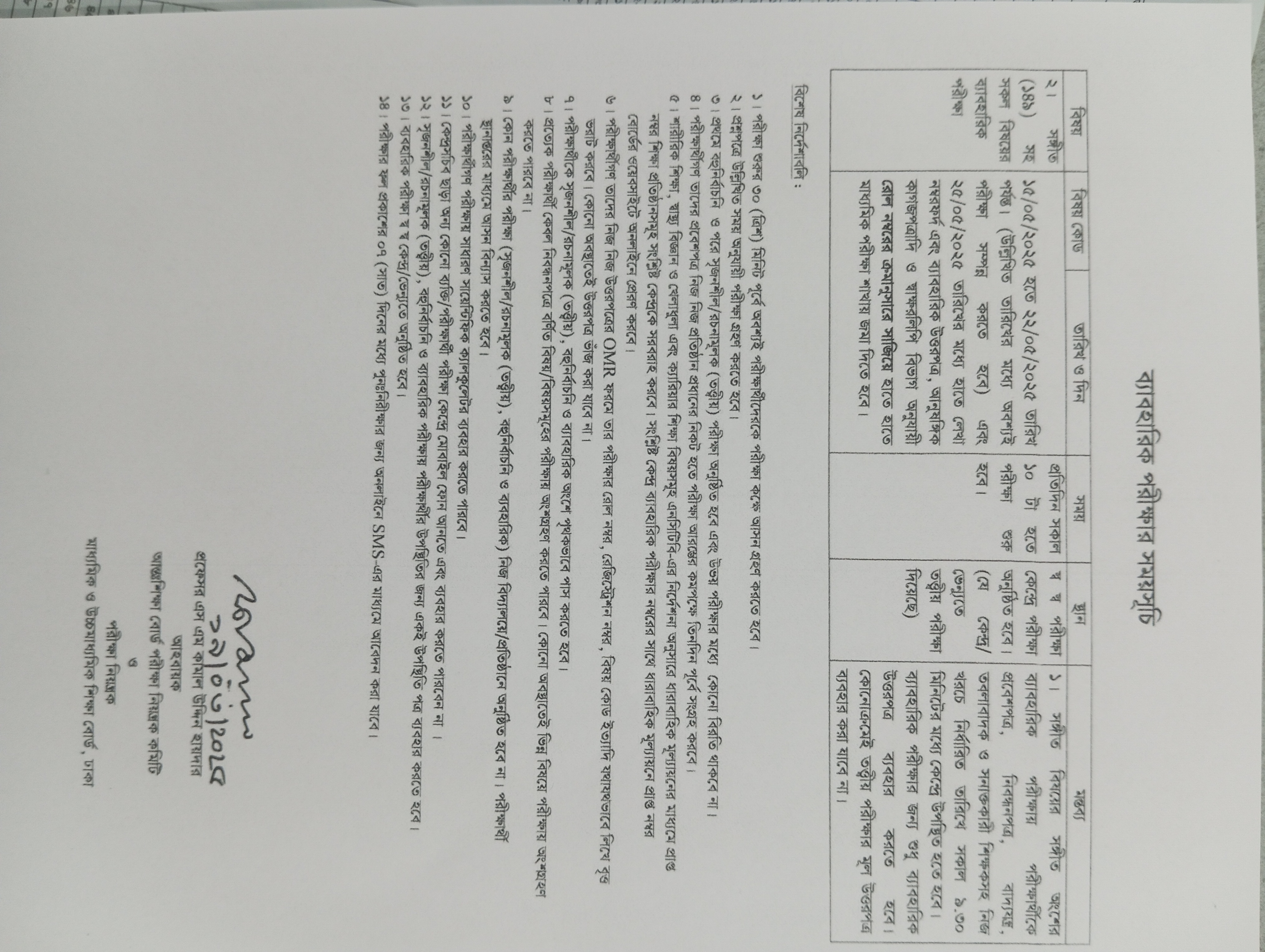এসএসসির সংশোধিত পরীক্ষার রুটিন
