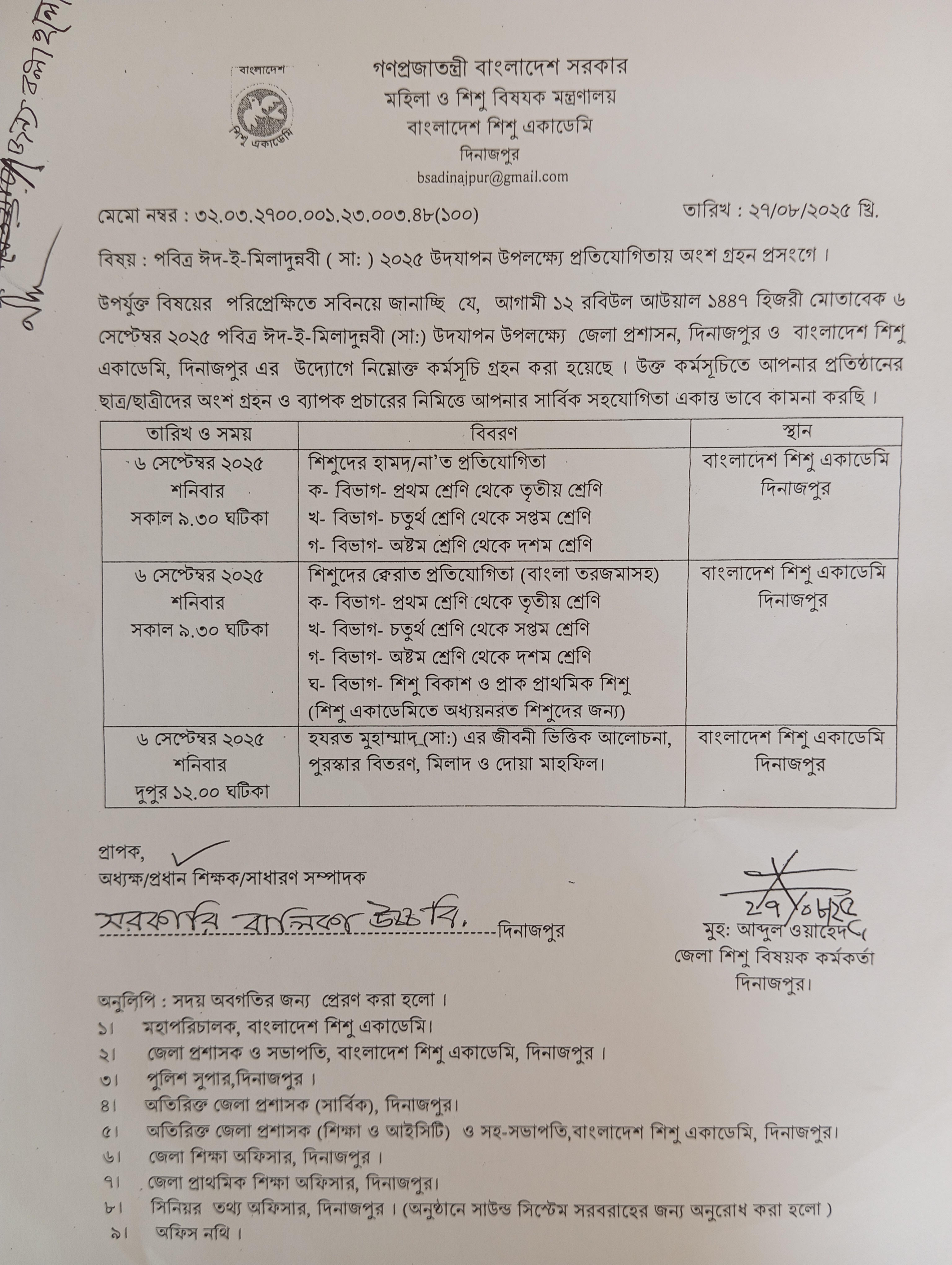 পবিত্র ঈদ-ই মিলাদুন্নবী (সাঃ) ২০২৫ উদযাপন উপলক্ষে প্রতিযোগিতায় অংশগ্রহণ প্রসঙ্গে।