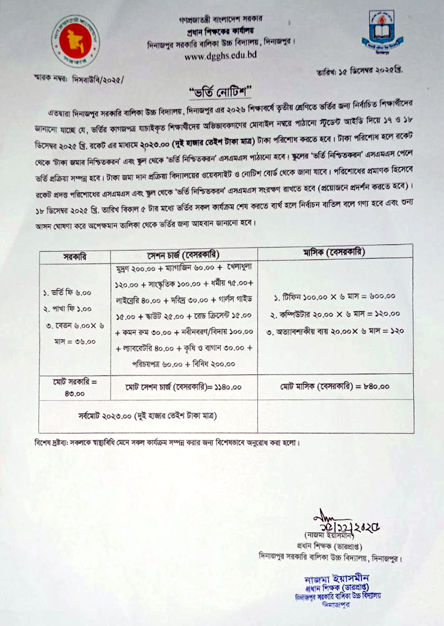 ভর্তি নোটিশ-২০২৬